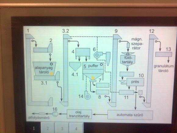 technológia megvalósítása. A fő egységek- csigasajtó, szűrők- németországi